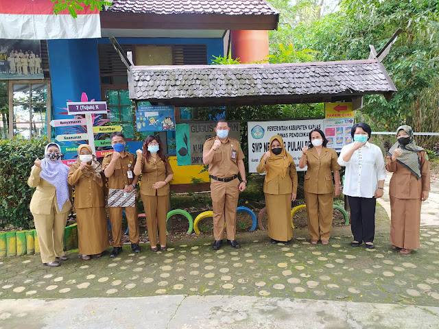 KUALA KAPUAS - Hari pertama pelaksanaan kegiatan pembelajaran tatap muka terbatas pasca pemberlakuan pembatasan kegiatan masyarakat (PPKM) level 4, Kepala Bidang Pembinaan SMP Agustin, S.Pd meninjau langsung kegiatan pembelajaran di Kecamatan Pulau Petak yakni SMPN 1 Pulau Petak dan SMPN 2 Pulau Petak. Didampingi Kasi Peserta Didik Eva Sondang Saragih, S.St, M.Pd beserta Staf Dikdas lainnya, pada Senin pagi (6/9/2021).